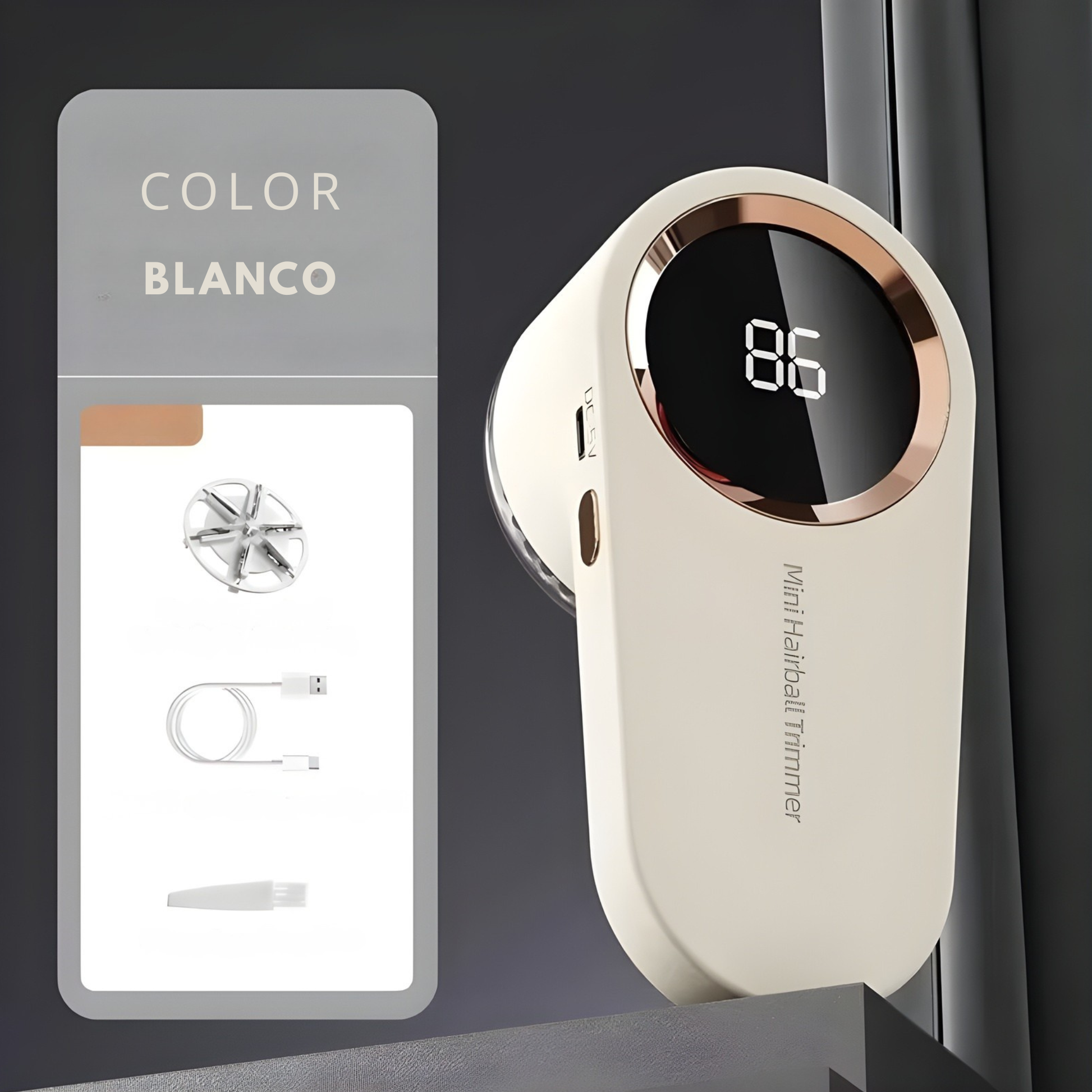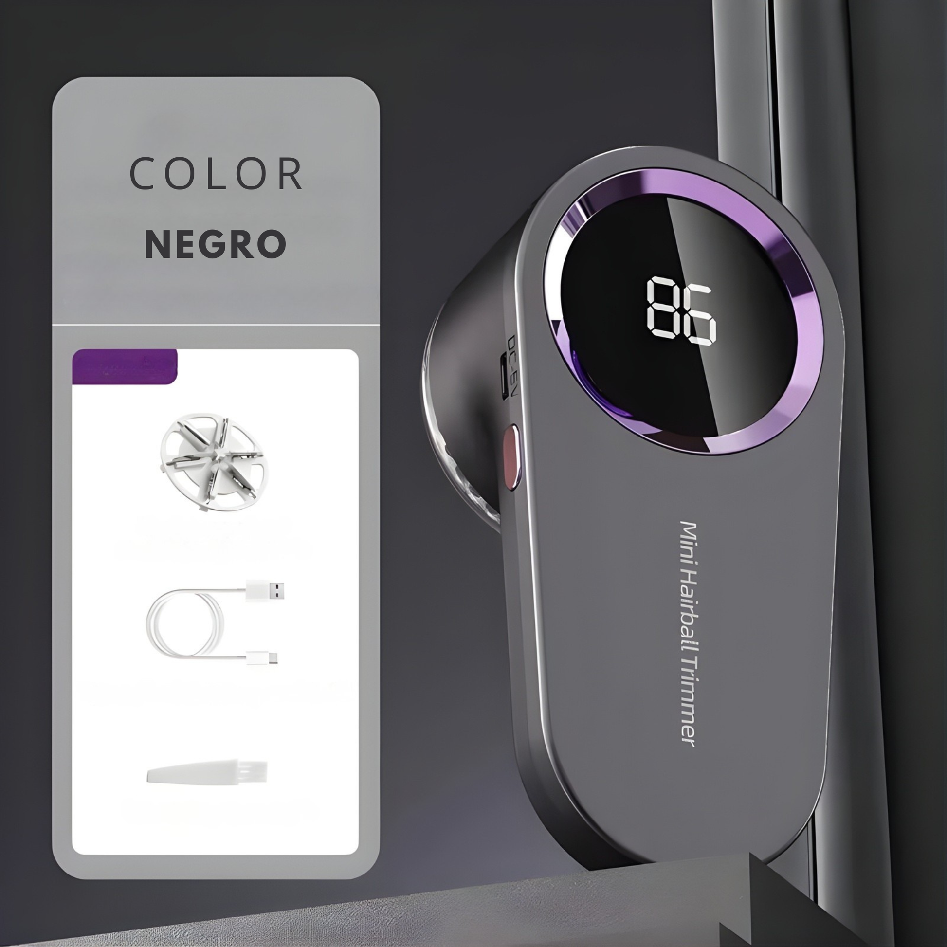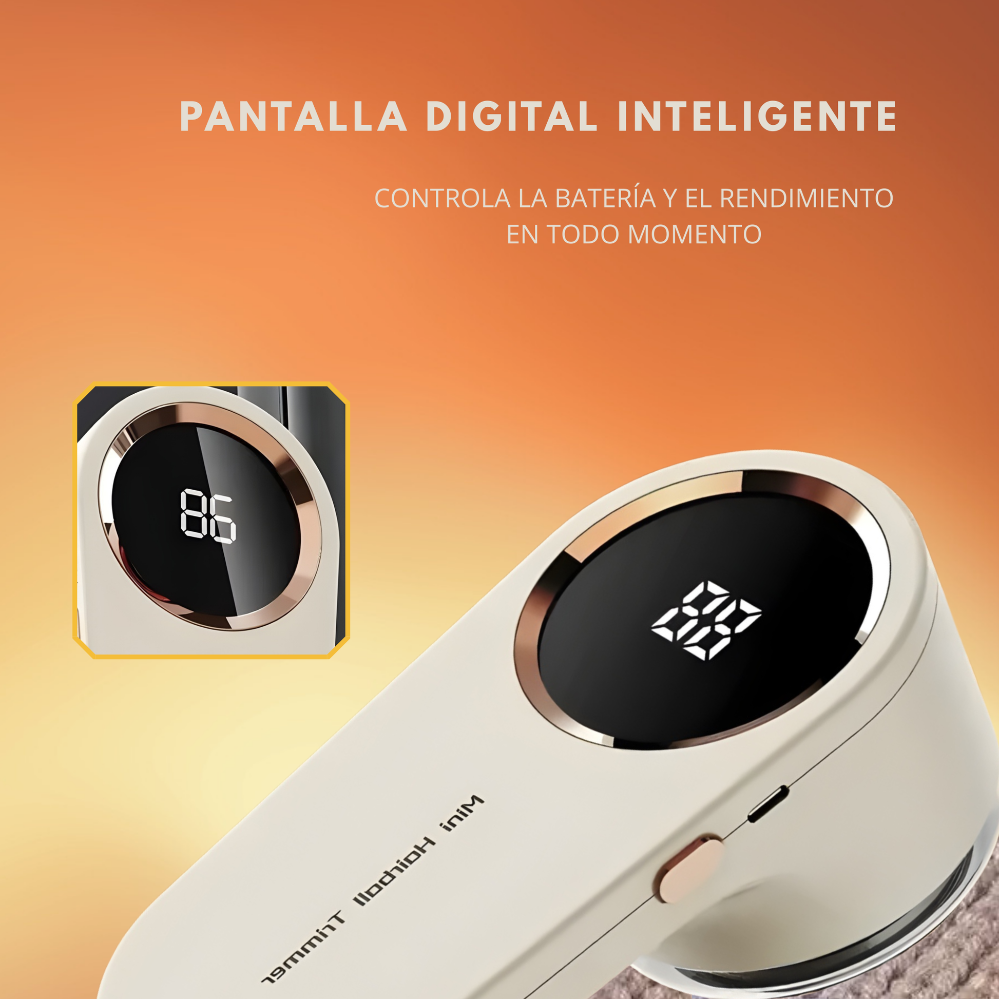 Removedor de pelusas eléctrico multifunción con pantalla digital, diseñado para devolver a tus prendas y textiles un aspecto limpio y renovado en cuestión de minutos.
